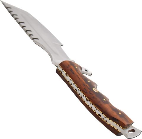 The K2 Tracker Knife Collection delivers power, precision, and craftsmanship in one bold design. Measuring 12″ overall, each knife features a 6.85″ 440 stainless steel blade with intricate file work for added detail and durability. Built for strength, the full tang construction is paired with a 5.5″ heavy-duty wooden handle, reinforced with mosaic pin inserts for both beauty and resilience.