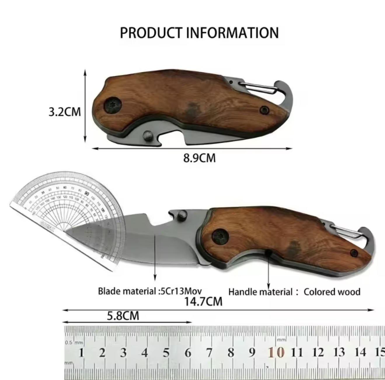 Upgrade your everyday carry with this compact pocket folding knife, crafted with durability and style in mind. Featuring a razor-sharp 5Cr13MoV stainless steel blade and a natural-colored wood handle, this knife is designed for versatility, strength, and a comfortable grip.