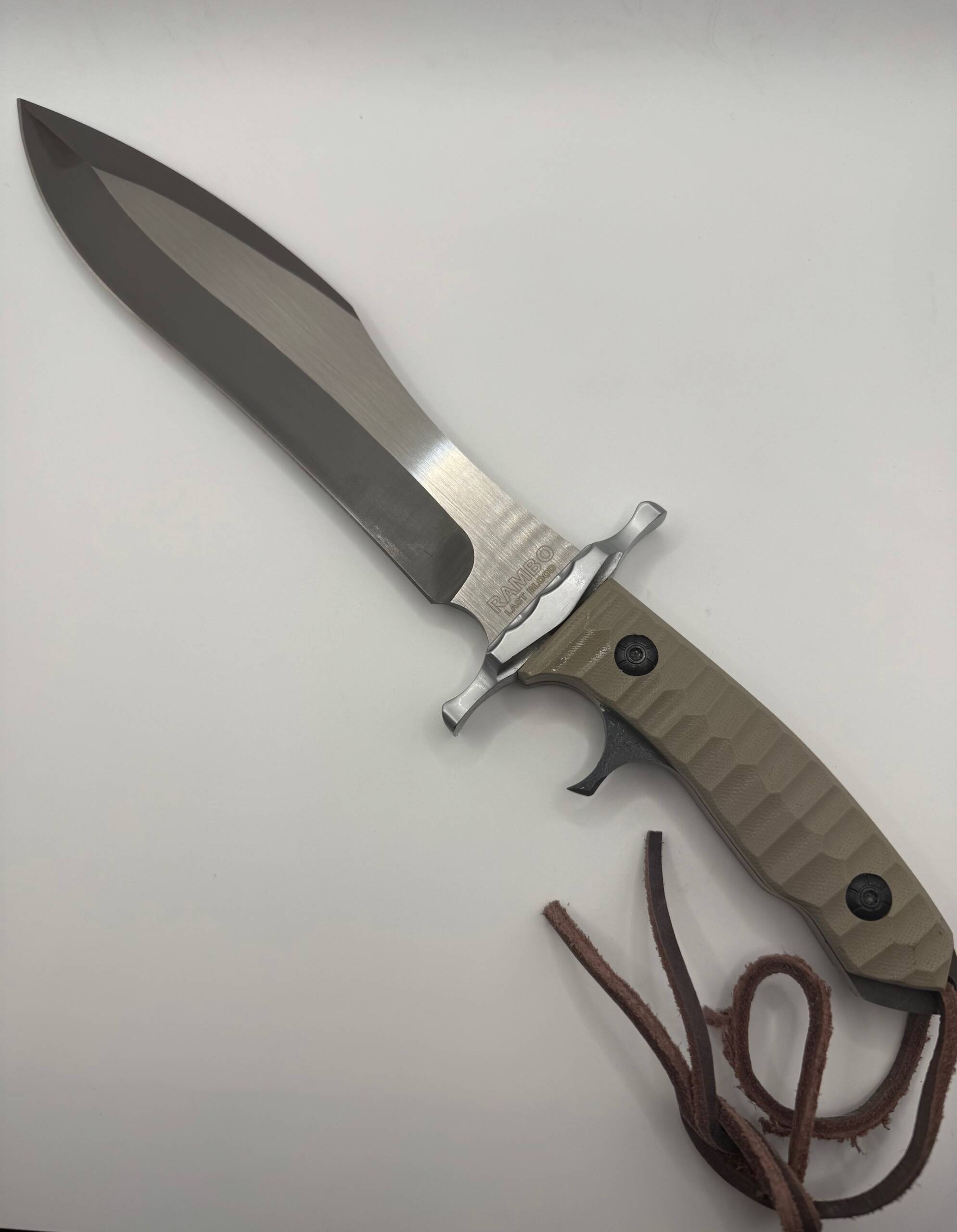 Unleash your inner warrior with the Official Rambo: Last Blood Bowie Knife, a fully licensed Sylvester Stallone collectible. Over 14 inches. This premium fixed-blade hunting knife is a faithful recreation of the legendary weapon featured in the movie Rambo: Last Blood.
