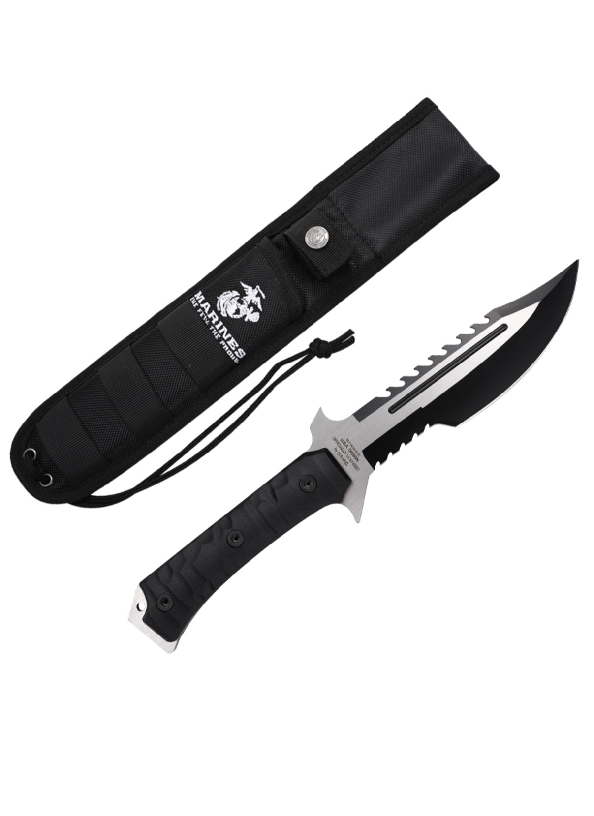 • Includes: USMC Nylon Sheath with Snap Closure and Belt Loop